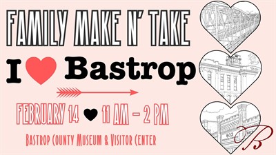 Explore downtown Bastrop with your family this Valentine’s Day on a fun scavenger hunt. Finish the hunt and take home an I ?? Bastrop sticker and a Bastrop County Coloring book!