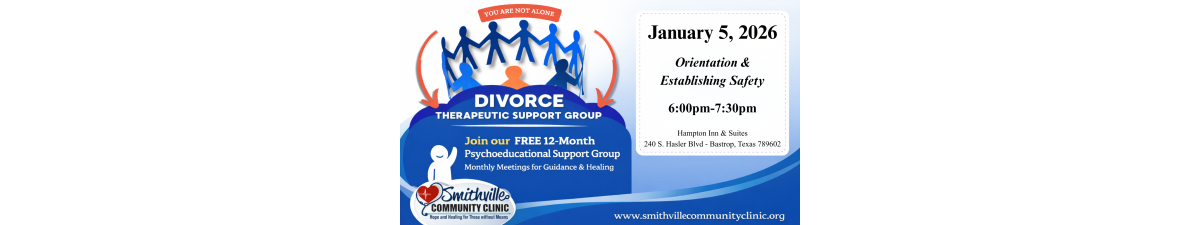 The Smithville Community Clinic is offering a FREE 12-Month Divorce Therapeutic Support Group beginning in January 2026. This psychoeducational group is designed to support healing, growth, and connection for individuals navigating divorce.