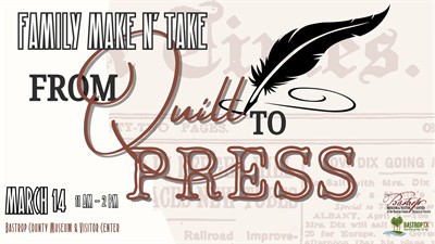 Step back in time and experience history in action at this hands-on family program all about how ideas were documented and distributed before the digital age! Visitors of all ages will have the chance to write with a quill and parchment and try out real printing press type blocks. Learn about the history of communication and explore how powerful publications like the Declaration of Independence to the Bastrop Advertiser (first published on March 1, 1853 and still going strong!) were printed and distributed, shaping the course of history. It’s an interactive, fun way for families to connect with the past and see how the written word helped change the world.